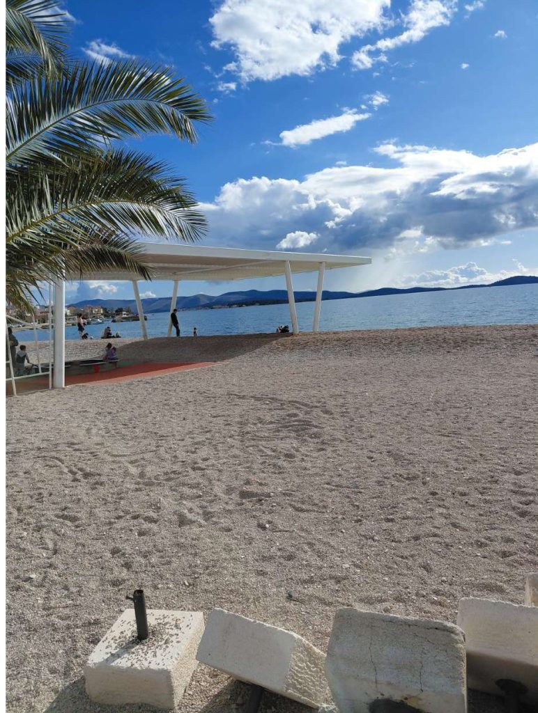 Danas je na Brodarici napokon bilo “vako kako triba” sunce, malo vitra i onaj osjećaj da je zima bar na jedan dan digla ruke od nas. Na plaži Rezalište nije bilo velike gužve, ali taman dovoljno ljudi da se osjeti život: familije, pokoji šetač i oni vječni “dežurni” što svako malo svrate baciti oko na more, naravno u sunčanim naočalama ka da je već četvrti misec.